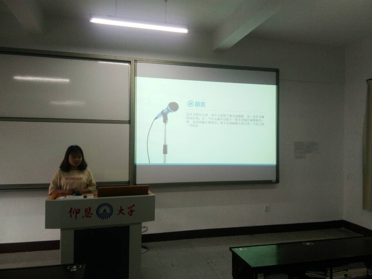 每位行政班长都精心准备了PPT进行述职报告,大致从学风建设、班干部队伍建设、班级学习生活情况、心理情况、主题班会、班级活动、未来规划等几个方面进行演讲,刘巧玫老师对本次活动进行总结,对行政班长提出了一些要求和期望,希望行政班长能够有本领、有担当,不断加强自身建设。