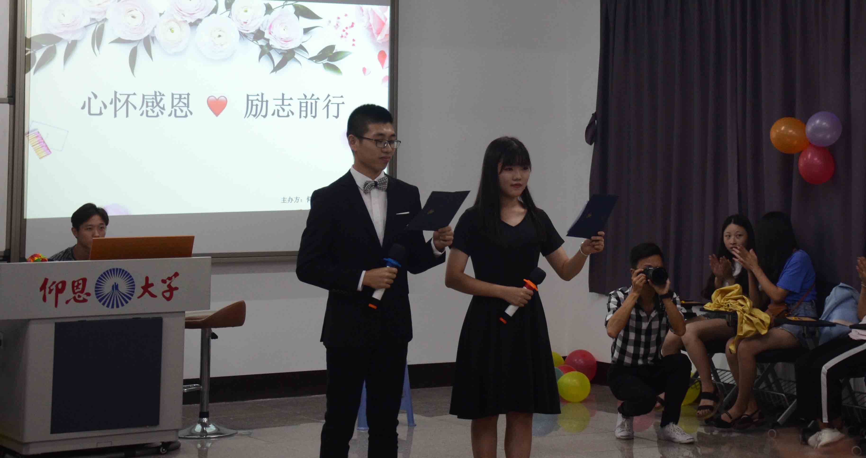 为进一步弘扬和培育中华民族感恩的传统美德,让大学生懂得感恩父母、师长、回报他人、回报社会,培养大学生成为关爱他人、服务社会、忠于祖国、道德高尚的有用之才。6月7日晚,betway西汉姆联官网于普照楼205教室举办“助学 筑梦 铸人”主题晚会。出席此次晚会的有betway西汉姆联官网党总支书记兼副院长胡友仁、仰恩大学团委副书记曹流、betway西汉姆联官网辅导员刘巧玫、陈峰、李少聪、朱婷,以及学务秘书林志荣和学院学生代表。
