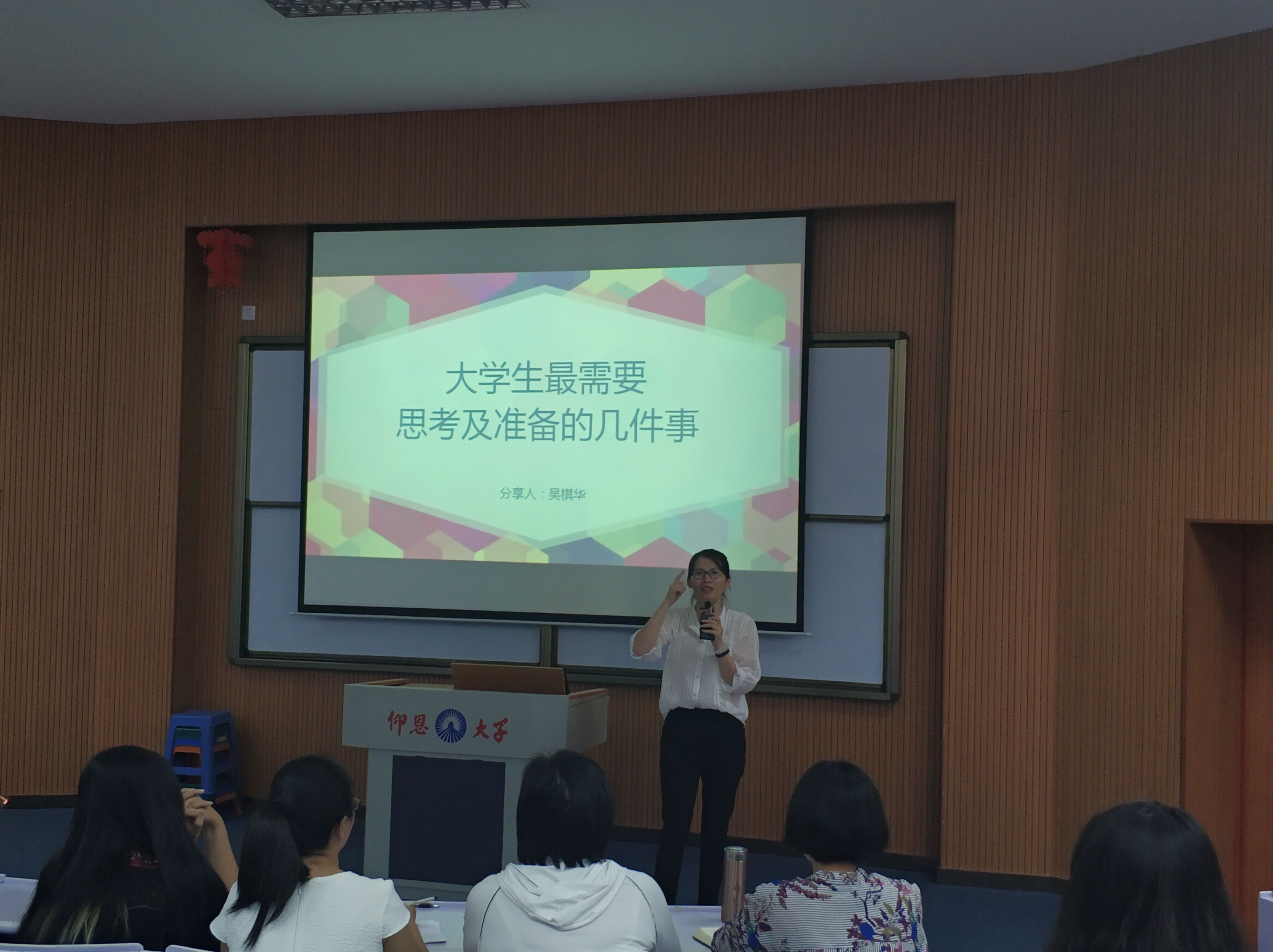 讲座现场 吴棋华老师以业界导师的身份,围绕“专业、就业、创业——大学生最需要思考及准备的几件事”的主题,用多个真实案例,向同学们阐释当前新闻传播实践领域专业就业状况,并结合自身职业经历及专业视野,分享专业领域创新创业的经验,就如何尽快对接职业要求提出指导意见,启发学生的自主创业、有效创业意识。吴棋华老师认为,专业、就业、创业是人生重要的三部曲,新闻传播学应用型较强,同学们应该拿出“一万小时”的精神去刻意、刻苦练习专业基本功,以投资人的思维和心态进行择业和创业。吴棋华老师还用”正言、正语、正思维”勉励大家,希望同学们就业时沉下心,用专注精神对待专业、就业和创业,培养自身的“觉知力”,举一反三、触类旁通,成为行业优秀人物。讲座过程中,同学们还针对自身如何提升能力适应新闻传播学实践领域的变化、如何用投资思维择业以及创业模式等问题进行了交流。