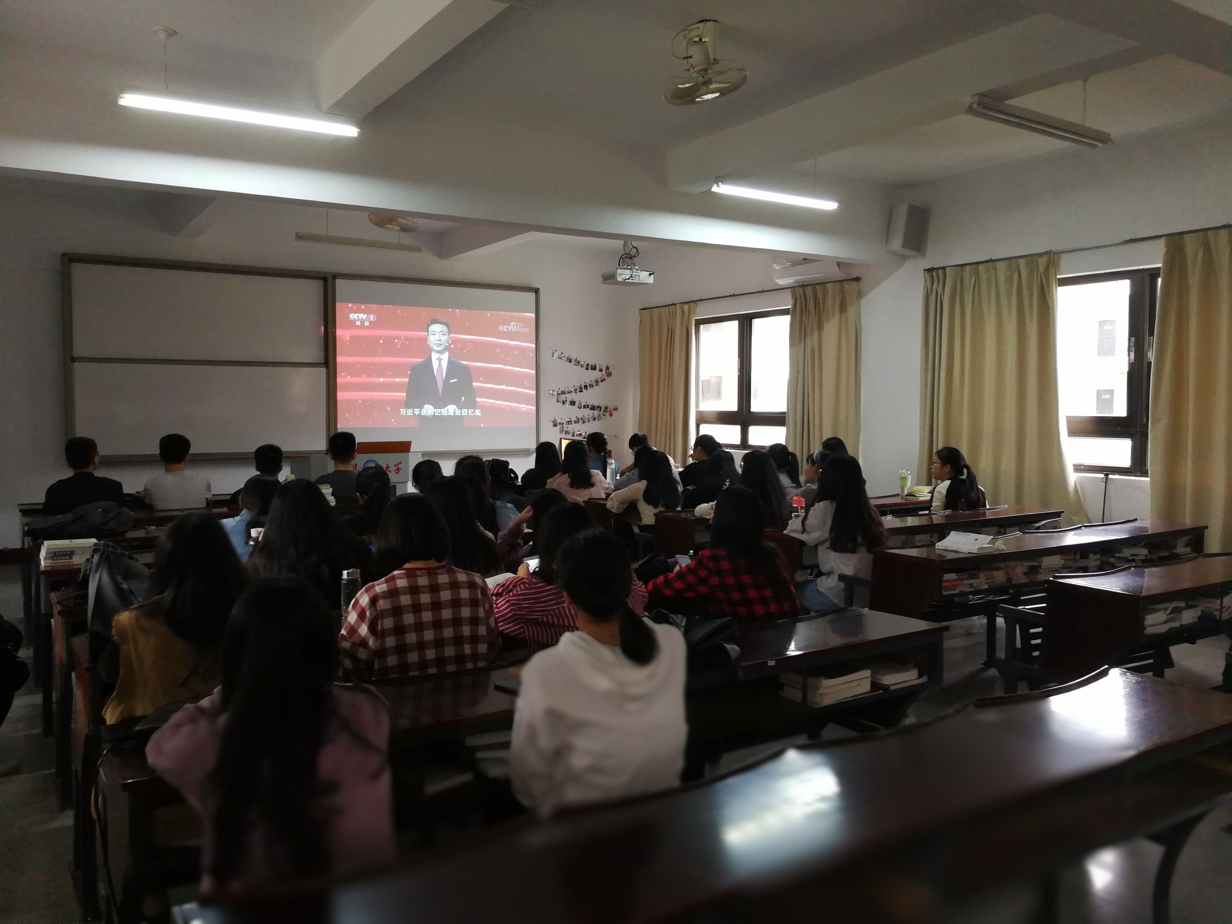 2018年10月17日,betway西汉姆联官网中文系学生党支部在仰恩楼B3-205教室里,一起学习了《平“语”近人——习近平总书记用典》第一集特别节目—— 一枝一叶总关情。