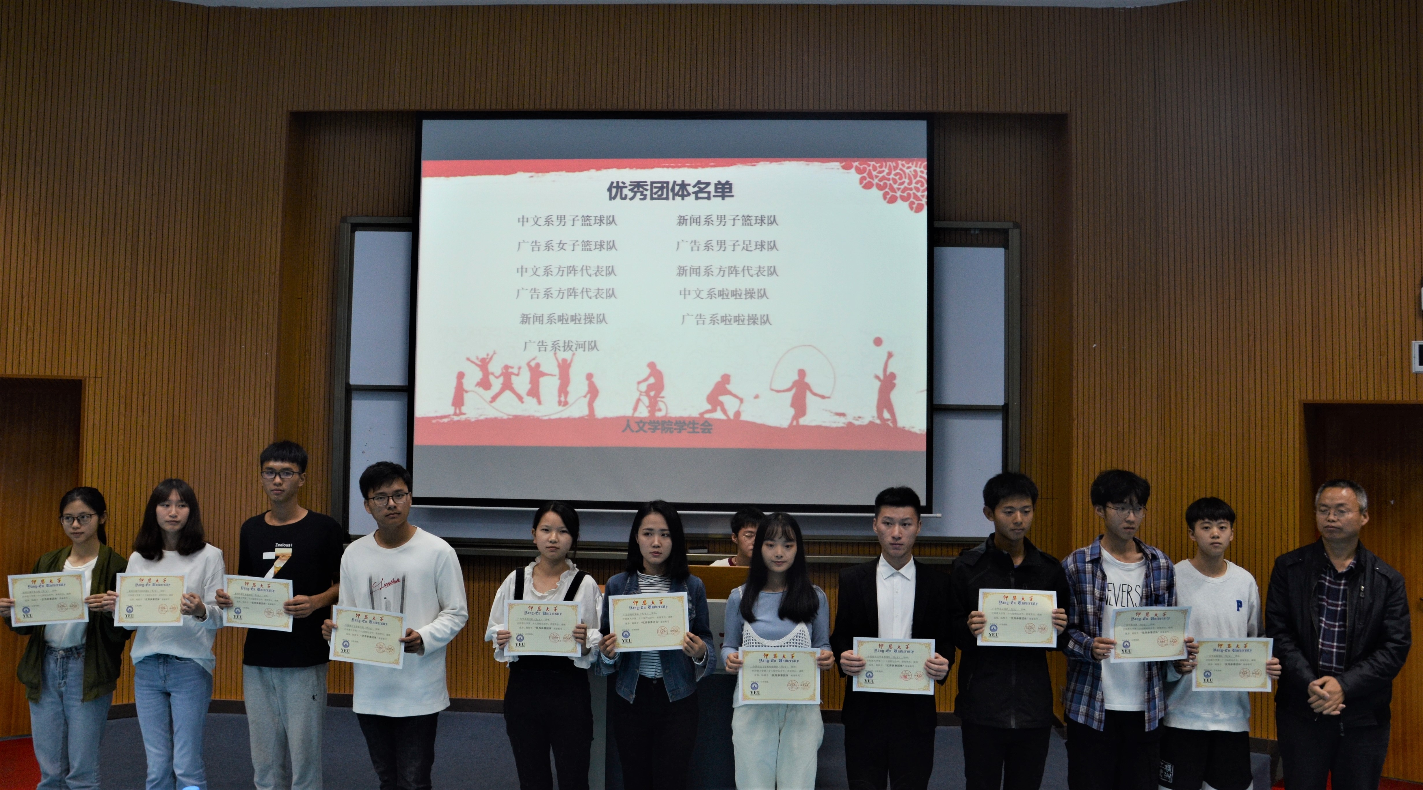 大会进行至尾声,胡友仁老师总结“人生总要拼搏,越努力,越付出,就会越优秀,让体育的精神燃烧大学四年,呼吁同学们走出宿舍,走向操场,不负青春,不负人文,不负此生!”。