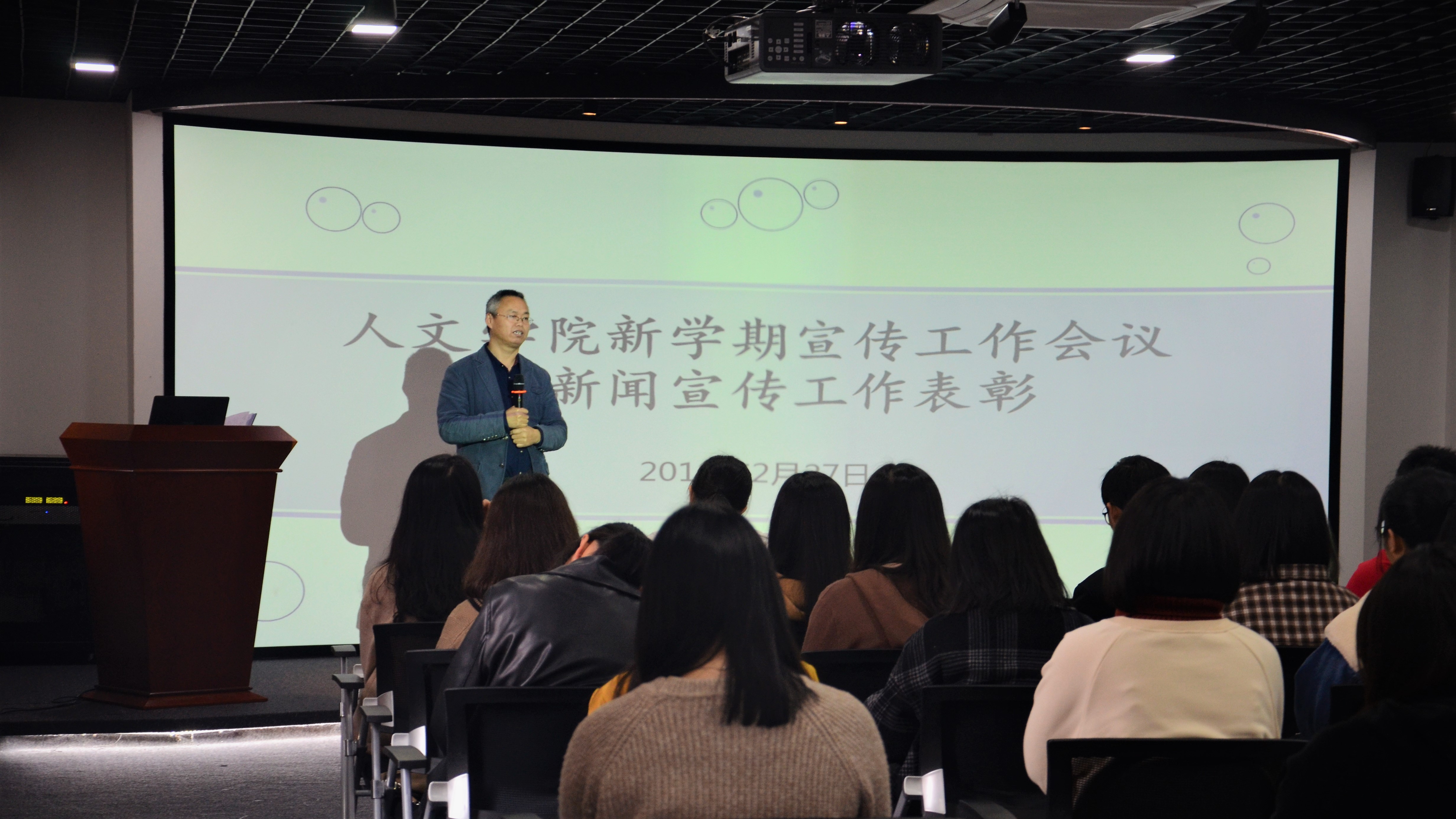 颁奖现场 刘巧玫老师对新学期的宣传工作以及新媒体团队建设进行部署,并表示:“希望同学们能够结合专业所学在宣传工作中,大胆创新,提高写作、采访、摄影、沟通、平台编辑等各方面技能。树立大宣传理念,举全院之力,做好宣传工作”。