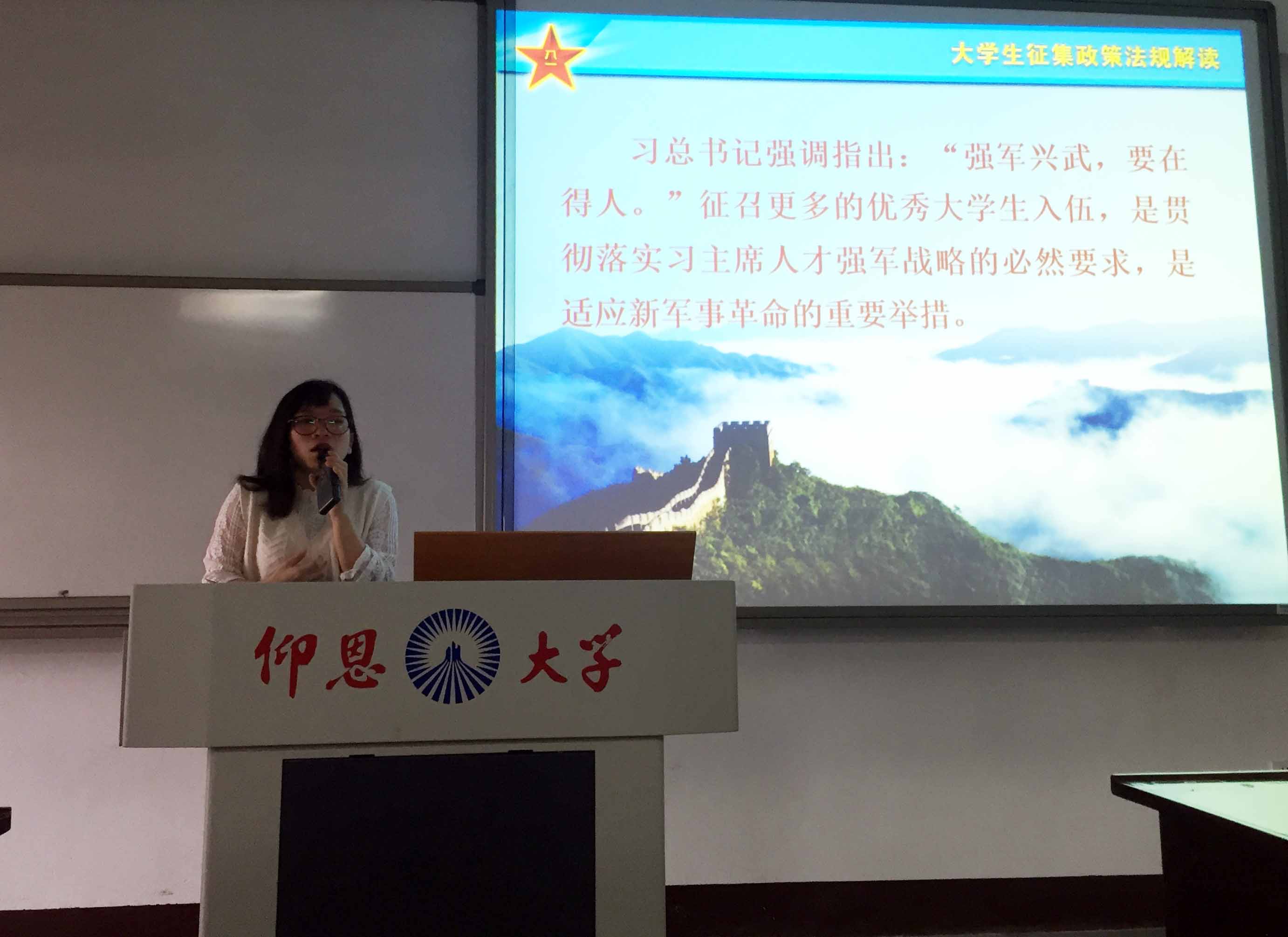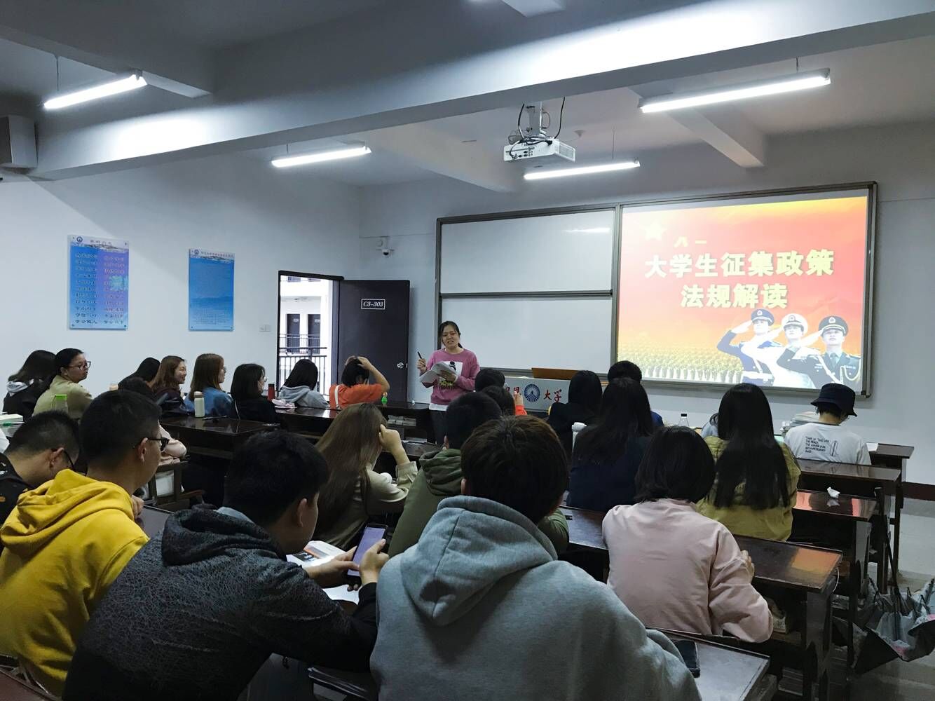 根据学校征兵工作的要求,落实学院征兵工作推进会的总体部署,betway西汉姆联官网各班级于4月14日下午在各自班会课教室召开征兵主题班会,具体工作由班主任负责落实。各班级都组织观看了征兵宣传视频,进行了2019年征兵政策宣讲和现场答疑,其中重点学习了国防教育手册中的仰恩大学鼓励学生参军政策规定,针对新闻学专业的班级还着重讲解了从普通高校毕业生中招收士官有关政策。据悉,下一阶段,将由班主任开展一对一面谈工作。