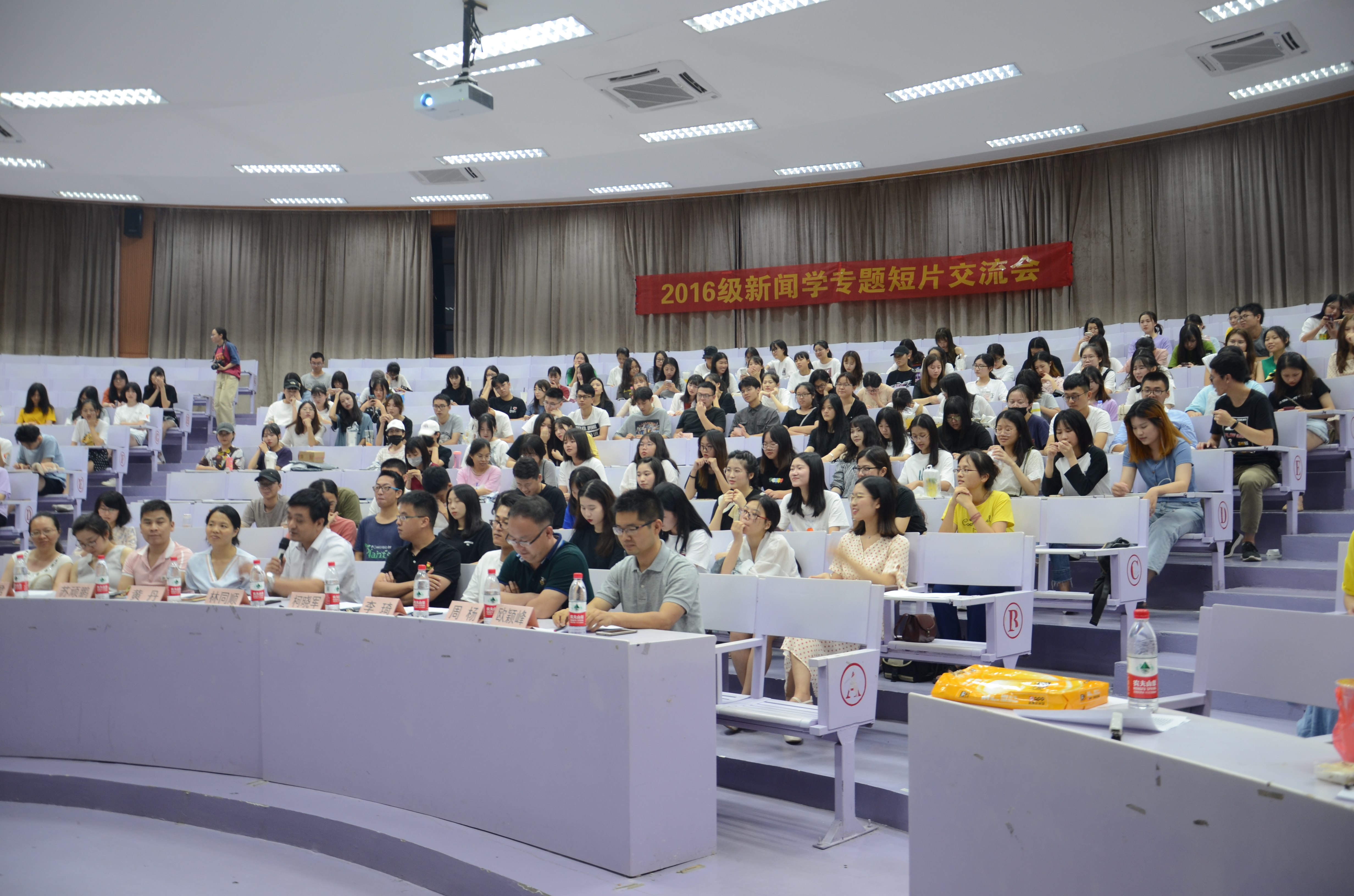 6月21日晚,betway西汉姆联官网2016级新闻学专题短片交流会在和昌教学楼博雅讲堂举行。金马传媒董事长林同顺及betway西汉姆联官网新闻系、广告系教师担任本次交流会评委。2016、2017、2018级全体新闻系学生参与观看本次专题短片交流活动。