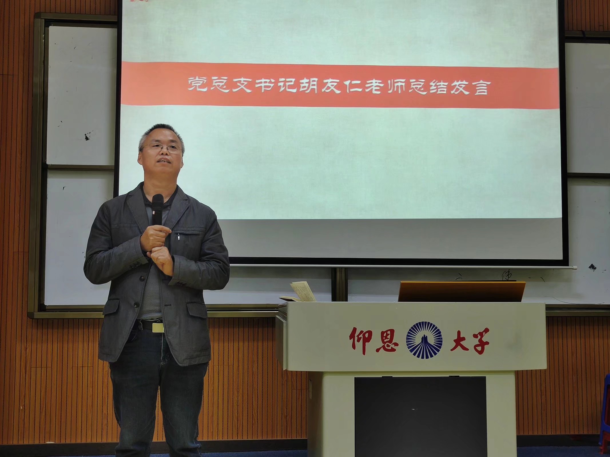 王勇浜老师宣读了2020级新生军训表彰情况,对获奖同学进行颁奖。胡友仁书记对本次大会进行总结发言,他以“不负韶华、不负榜样、不负重托”勉励在场新生,希望他们能够早日成才。