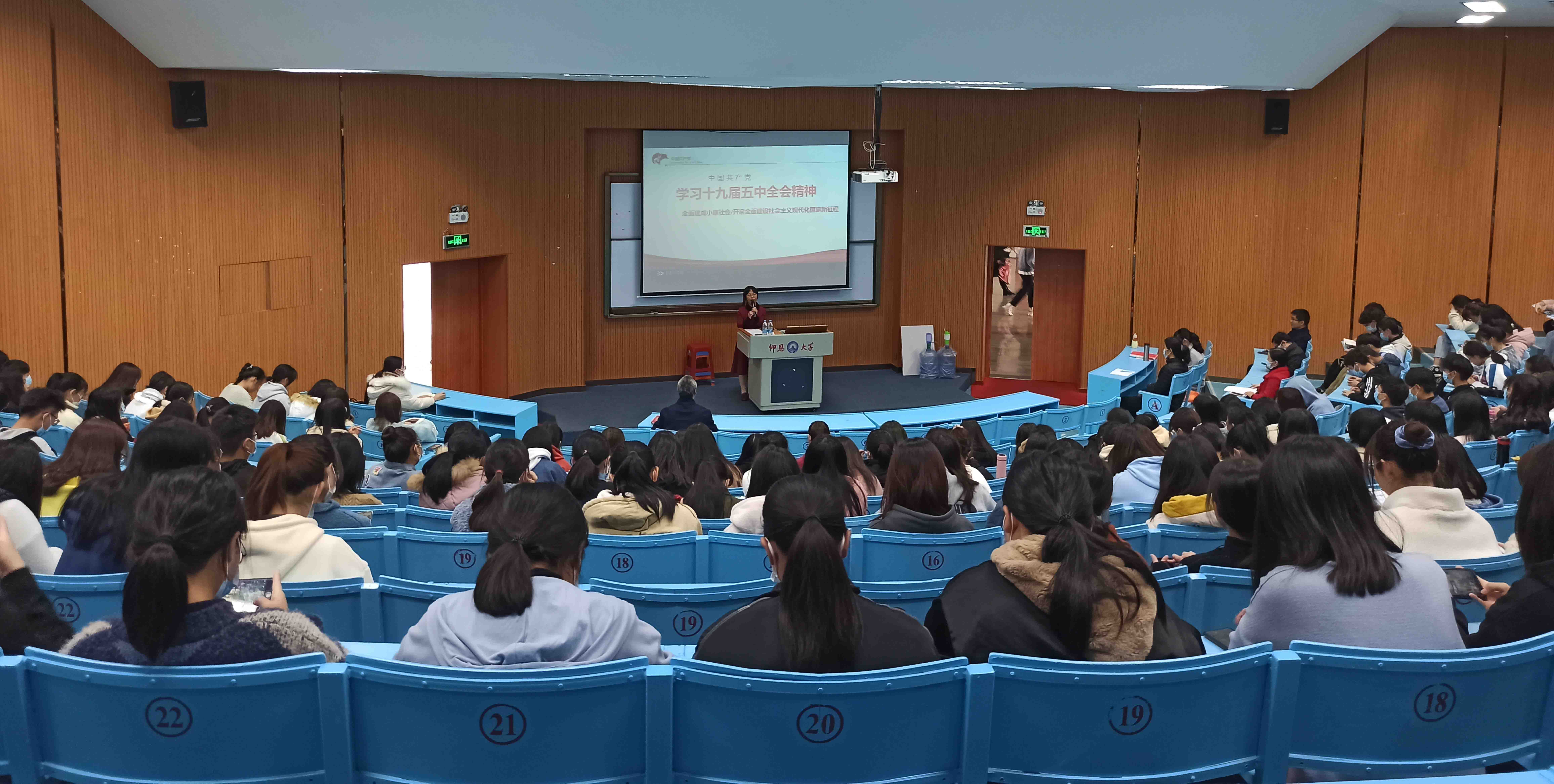 杨丽娥副教授从召开党的十九届五中全会的重大意义、“十四五”规划建议稿要点、建设高质量教育体系三个部分展开深入阐述,讲清楚了全会的重要意义、决胜全面建成小康社会取得的决定性成就、讲清楚了党中央制定“十四五”规划和2035年远景目标的战略考量、到2035年基本实现社会主义现代化的远景目标和“十四五”时期经济社会发展的方针原则、主要目标、重点任务。