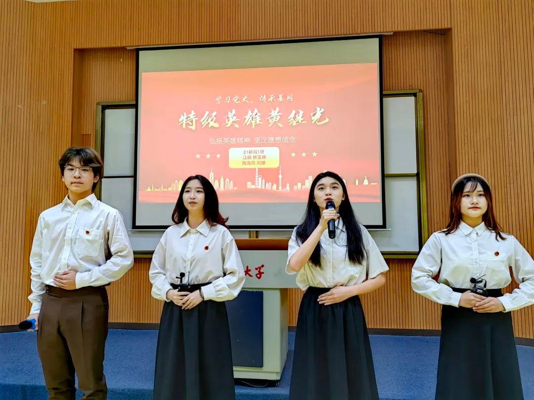 在本次比赛中,来自21级新闻1班的“桃林留硕果”队的四名成员江硕、林玉琳、陶海玲、刘婷,以《特级英雄黄继光》为题,讲述了21岁用青春热血誓死扑灭敌人嚣张气焰的特级英雄黄继光的感人故事。最终,他们以第二名的好成绩取得本次活动的二等奖。(betway西汉姆联官网团委/文图)