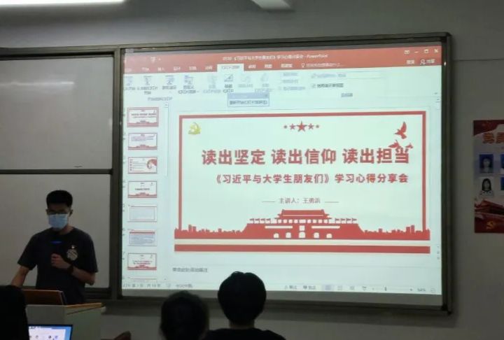2022年5月30日,新闻传播学系学生党支部书记王勇浜同志于仰恩楼C1-303以“读出坚定,读出信仰,读出担当”为主题开展了的学习心得分享会,新闻传播学系学生党支部全体党员同志参加本次分享会。   本次学习心得分享会,王勇浜同志从“从编者按了解背景”、”《习近平与大学生朋友们》第二卷连载出版座谈会精神“和”语录摘选分享“三个内容开展。首先由王勇浜同志从“编者按“的内容,向全体党员同志介绍了《习近平与大学生朋友们》系列采访实录第二十六至第五十篇系列采访实录,既有从1984年至2021年、贯穿37年的时间线,也有从县到市到省、横跨全国东西南北中的空间线,一个个故事、一段段回忆、一幕幕情景,无不闪耀着智慧的火花,体现着情感的温度,彰显着思想的伟力。其次,王勇浜同志带领全体党员学习《习近平与大学生朋友们》第二卷连载出版座谈会的会议精神。会议指出《习近平与大学生朋友们》系列采访实录讲述了不同时期习近平同志关心关爱大学生的生动故事,是广大青年学生学习立志修德、提高本领才干的生动教材,是广大青年工作者学习做人做事、提高能力水平的生动教材,是广大团员青年学习领会习近平新时代中国特色社会主义思想的鲜活辅导教材,会议从三个不同的方面进行强调,引导全体青年要把学习成果切实转化为广大学子按照习近平总书记嘱托健康成长、跟着党奋斗的行动自觉,转化为广大青年对习近平总书记衷心爱戴、矢志追随的行动自觉。最后,王勇浜同志为全体党员分享了“没有窍门,就是要反复读,要把马克思主义原理厚的读薄、薄的读厚”、 社会最需要、最欢迎有实干精神、能解决实际问题的人,而最不欢迎夸夸其谈、眼高手低的“客里空”,叮嘱同学们要当实干家,不做“客里空”等语录,并结合个人、结合实际情况与全体党员进行学习交流。