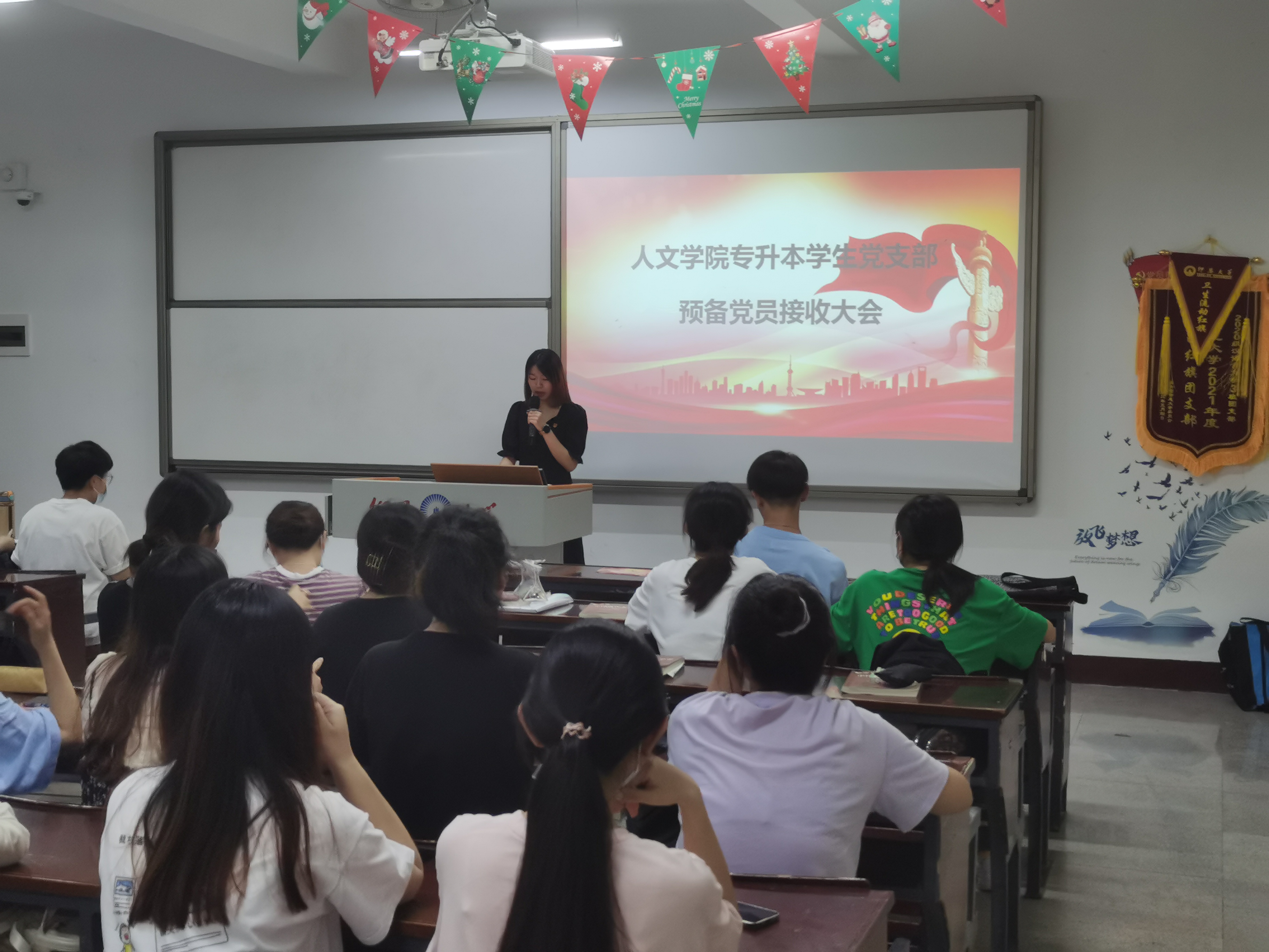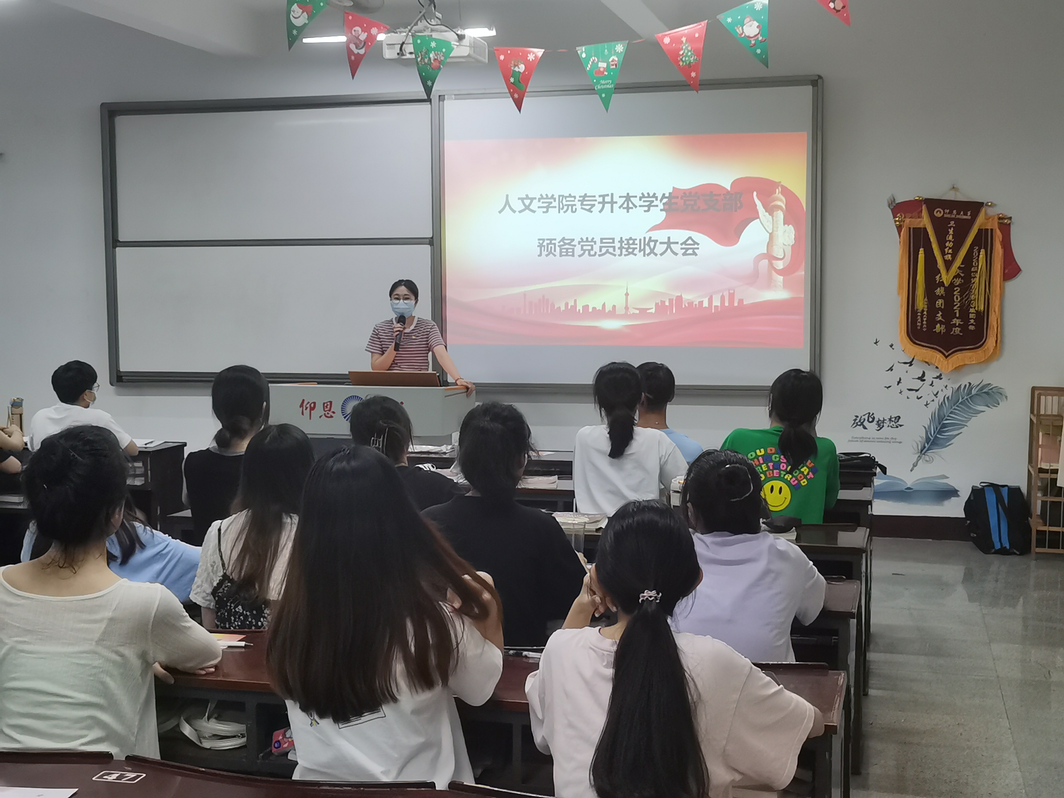 6月1日,betway西汉姆联官网专升本学生党支部在仰恩大学第三教学区仰恩楼B1-205隆重召开预备党员接收大会,本次会议由简奕萌同志主持,支部全体党员同志及发展对象参与此次会议。大会围绕接收孙雅婷、李秋娟、陈宇侯、张千韵4名发展对象成为预备党员、并通过大会讨论与决定发展对象的入党问题。