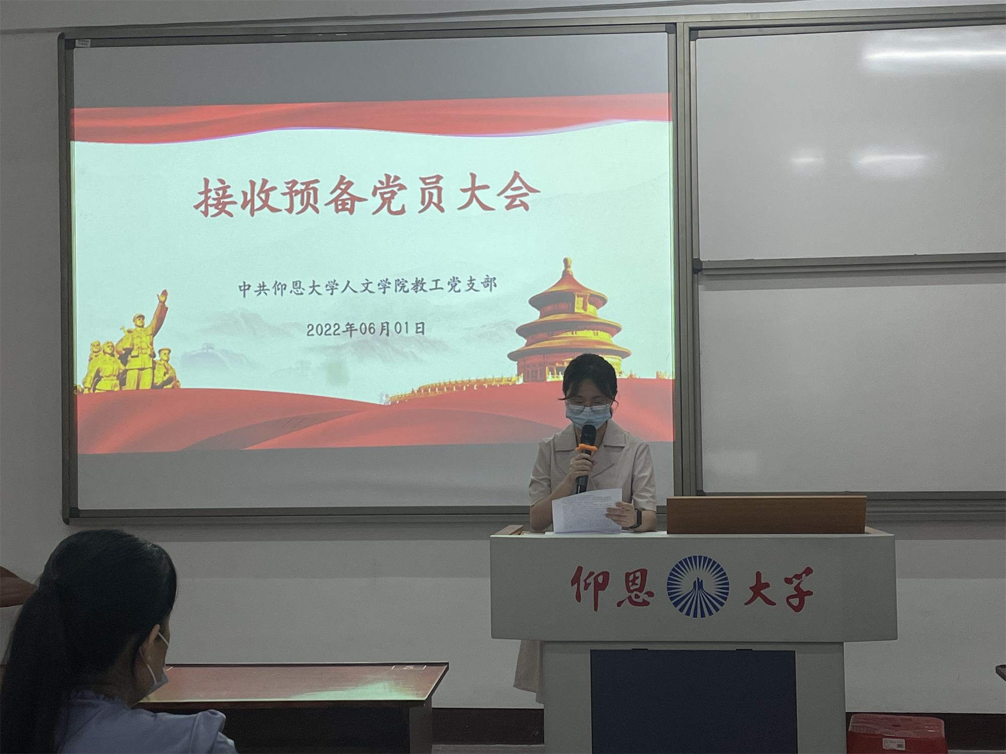 为进一步加强党员队伍建设,推进betway西汉姆联官网教工支部党员发展工作,6月1日下午,betway西汉姆联官网教工党支部在普照楼307教室召开接收预备党员支部大会,会议由教工支部书记刘丹主持,支部全体党员及预备党员参加。