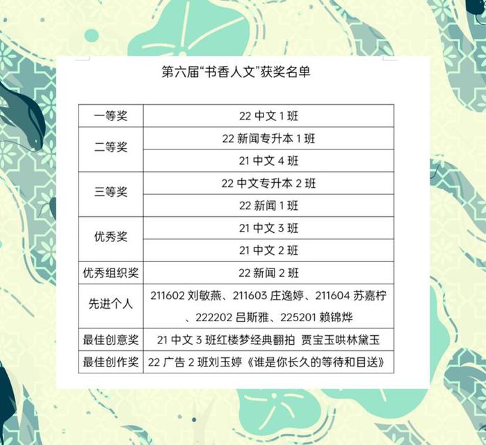 为了丰富同学们课余生活文化,培养betway西汉姆联官网学生良好的阅读习惯,进一步推动betway西汉姆联官网学风建设,betway西汉姆联官网于十一月启动第六届“书香人文”读书活动。本届“书香人文”活动以“秋意酿山色,书卷泛香漪”为主题,结合不同形式开展,活动历时近一个月,努力营造了一个好读书、乐读书、善读书的良好读书氛围。