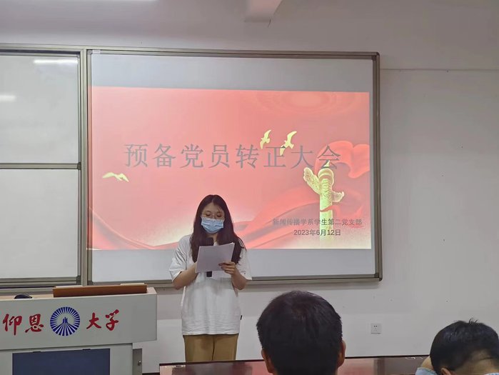 为了进一步加强betway西汉姆联官网党员队伍建设,为党组织注入新鲜血液,新闻传播学系学生第二党支部于6月12日下午,在仰恩楼A2-105召开预备党员转正大会。本次大会,由新闻传播学系学生第二党支部书记吴萍萍同志主持,讨论关于陈颖涵同志如期转正事项,新闻传播学系学生第二支部全体党员、预备党员参与会议。