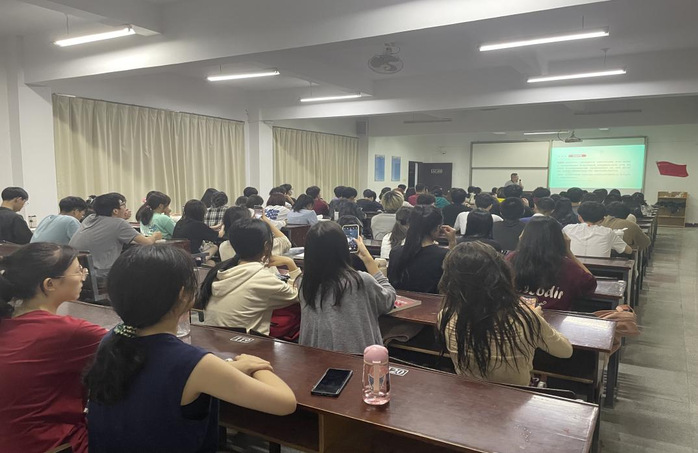 同时,林副总编结合自身经验,与在座同学们强调实践的重要性,林副总编说:“一定要用心去了解,一定要动手去写,才能真正体会到新闻稿的魅力。”除此以外,林副总编还为同学们讲解了“倒金字塔”结构,提醒我们要头重脚轻地安排组织材料,坚持事实重要性递减的顺序,从小到大,突出最重要、最新鲜的事实。