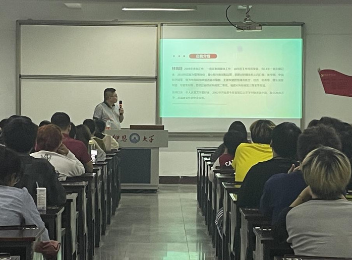 10月9日晚上,中国网海峡频道副总编林锦旺在betway官网2023级网络与新媒体专业1、2班的《大学写作》课上以讲述写作中的新闻文体为主线,为同学们介绍了一名新闻系学生应该具备的常识。