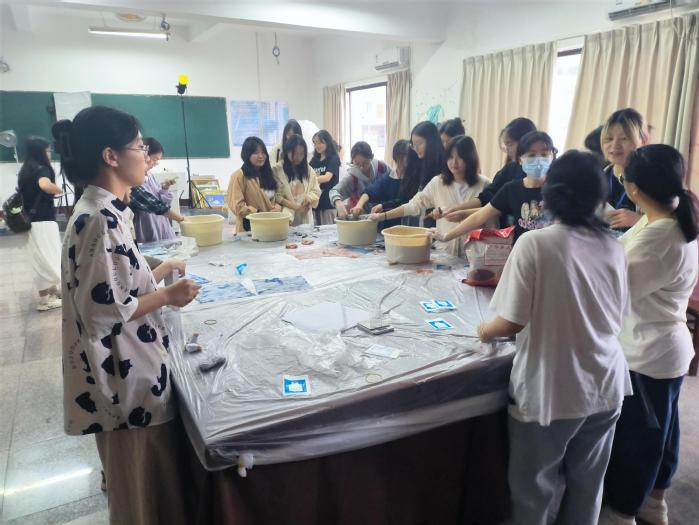 此外还有“世遗图书借阅联动”“文创艺术沙龙”“原创话剧《留在仰恩》沉浸式剧本杀专场”以及“非遗扎染体验”等活动的举办,进一步全方位展示海丝泉州特色文化的独有风貌。尤其,“海湾蓝”和“古厝红”的扎染体验吸引大家的目光并积极参与。指导老师详细讲解了扎染的历史和技艺,同学们纷纷动手尝试,现场气氛热闹非凡。在扎染老师的指导下,大家制作出了各具特色的扎染作品。