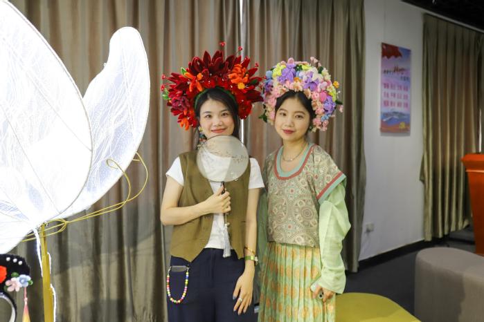观众们体验簪花围