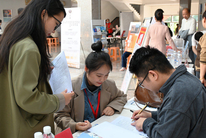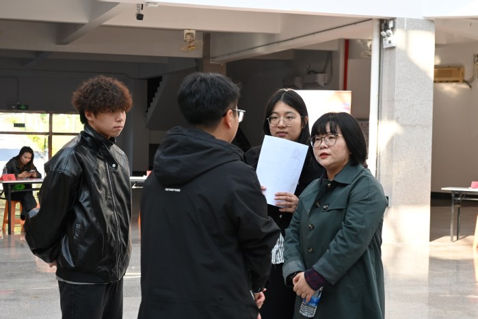 为进一步提高人才培养与地方经济社会发展的适配度,推动学院各专业人才培养紧密对接用人单位需求,以OBE理念为指导,全面提升人才培养质量。12月11日下午,betway西汉姆联官网院长欧怒,汉语言文学专业负责人苏顽鹏、新闻学专业负责人陈胜华、广告学专业负责人王秋燕、网络与新媒体专业负责人朱婷带领各专业专任教师及辅导员一起深入招聘会现场,开展各专业人才培养方案与用人需求适配度的调研活动。