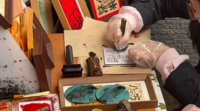 实践队成员们亲自参与了木板年画制作这一古老而独特的技艺活动。在传承人的指导下,队员们小心翼翼地将雕刻精美的图案拓印到纸上,每一笔都凝聚着对传统文化的敬畏与热爱。通过亲身体验,队员们不仅感受到了拓印技艺的魅力,更深刻理解了非遗文化背后所蕴含的深厚历史与文化底蕴。