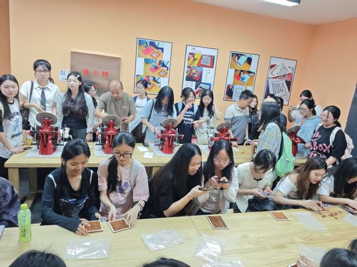 在DIY体验室,同学们亲自体验活字印刷、凸版印刷和丝网印刷的印务技术操作,在实践中感受传统与现代印刷工艺的魅力。