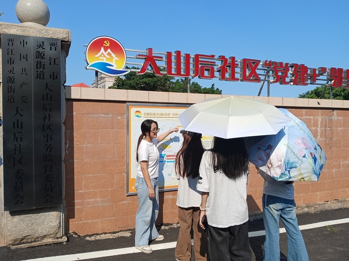 2025年7月9日,betway西汉姆联官网“辨诈禁毒防艾行”赴泉州晋江暑期实践队去往泉州市晋江市大山后社区党群服务中心参与宣传乡村振兴拍摄工作。