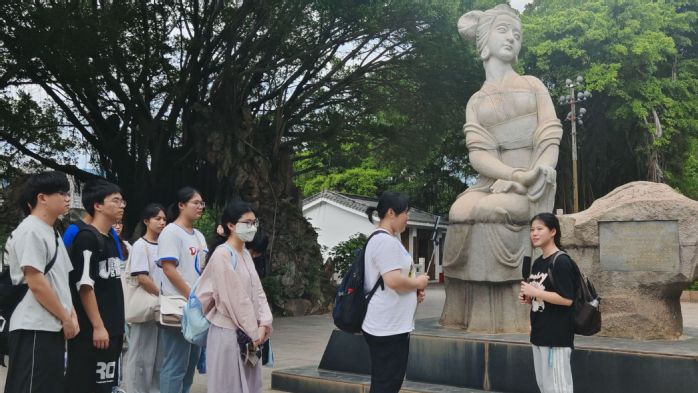 实践队成员在罗星塔下,围绕这座见证海上交通历史的古塔,介绍其作为“中国塔”在航海史上的标识意义,讲述往昔舟船往来、商贸交流的故事。同时,队员们穿梭公园,展现园内景致,结合福建船政文化,阐释罗星塔与船政精神传承的关联,从船政先辈报国壮举,到海洋文化延续,让观众沉浸式感受历史厚重。