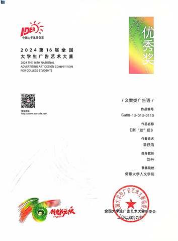 广告学专业注重学生创意实践与综合素养提升,学生在各类专业赛事中屡获佳绩,近三年省级以上学科竞赛获奖学生265人次,占本专业学生总数41.8%。先后在各类学科竞赛中斩获优异成绩,展现扎实的专业功底与独特的创意思维;部分优秀作品亦受邀参展“米兰设计周——中国高校设计学科师生优秀作品展”,登上国际舞台,彰显专业育人成果与国际视野。