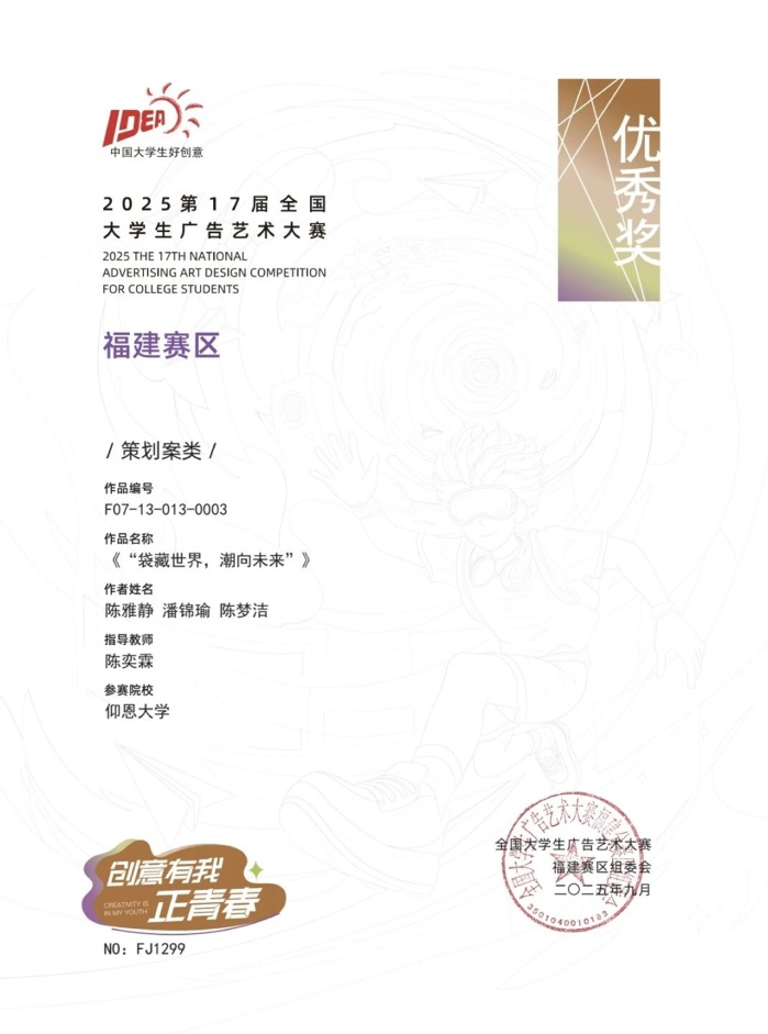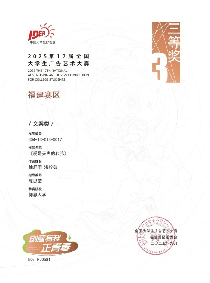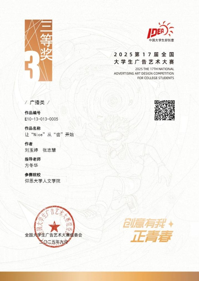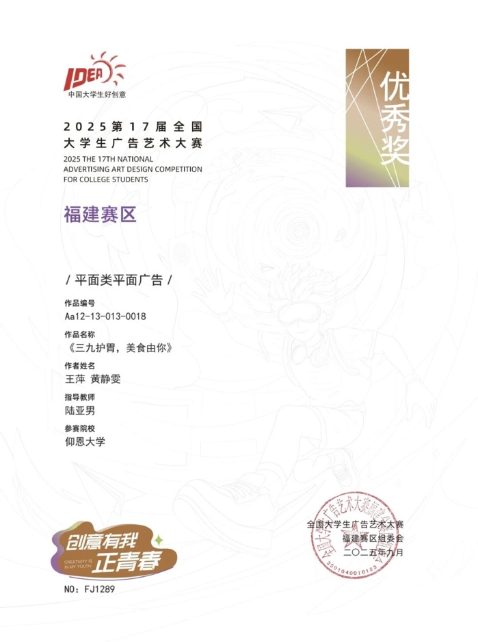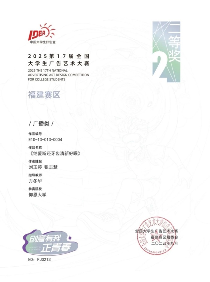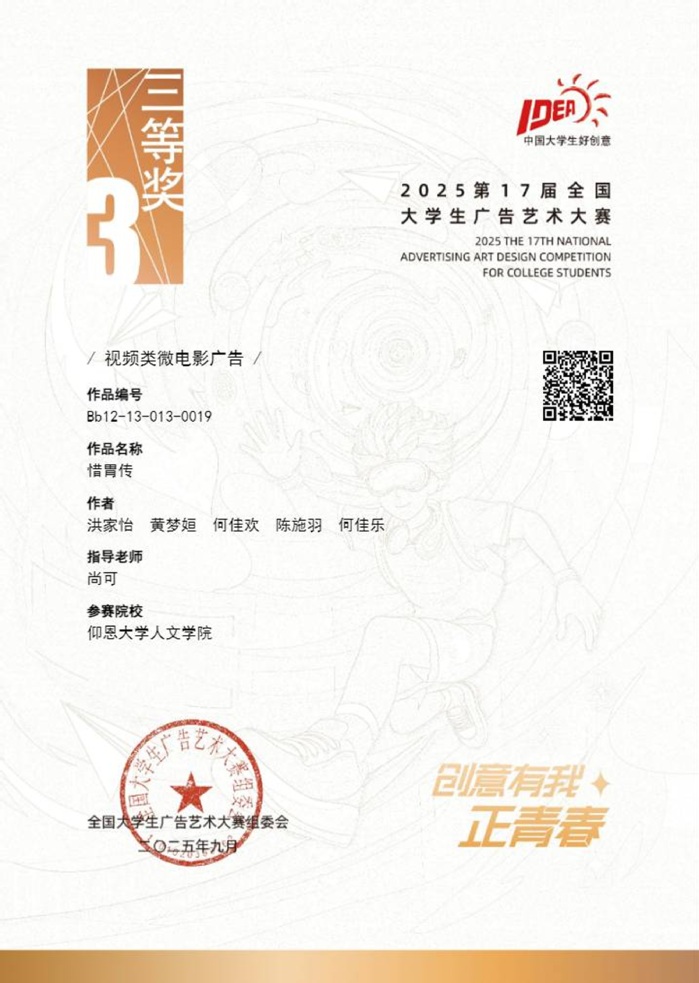 本届大赛中,betway官网参赛作品涵盖了平面设计、影视、动画、广播、文案、策划案等多个类别,充分体现了betway官网学生在广告创意、设计表达等方面的综合素养与实践能力。以下是部分获奖者证书展示: