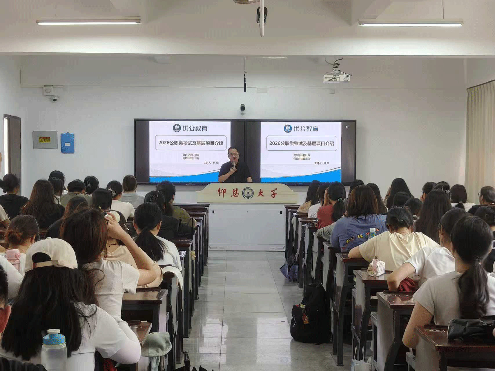 活动伊始,林啸老师便向同学们进行了系统的讲解。详细梳理了国考、省考、选调生等各类公职考试中的不同特点及报考优势并清晰标注了考试时间节点,还对招录部门的职能定位、岗位设置等同学们关心的内容进行了深度解读,帮助大家建立起全面的考情认知框架。之后围绕公务员的发展前景及薪资待遇等多个热门问题作出切合实际的分享。最后林啸老师通过做题的方式向同学们全方位的展示了公职类考试面试技巧及方法。