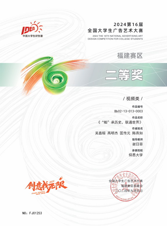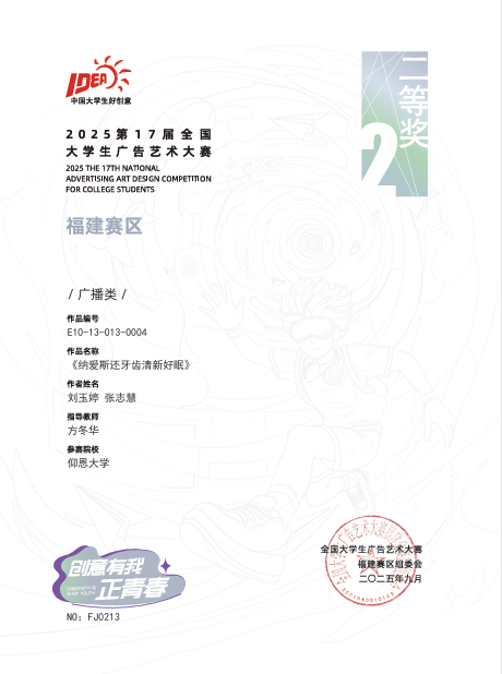该赛事以企业真题为导向,提升学生创新与实践能力,推动广告教育改革,助力数字文旅等领域发展。betway官网学子获国家级二等奖2项;省级奖项共16项,其中一等奖4项,二等奖1项,三等奖11项。