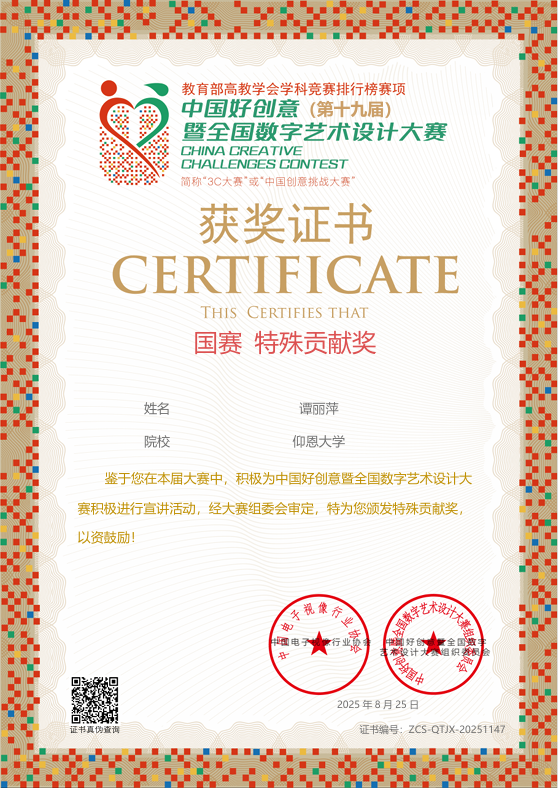 此项赛事是我国首个聚焦数字艺术、数字设计、数字创意等领域的综合类赛事,开设“艺术思辨类”“社会创新类”等特色赛道,旨在提升大学生数字艺术创新思维与实践能力,为数字文化产业培养高素质设计人才。
