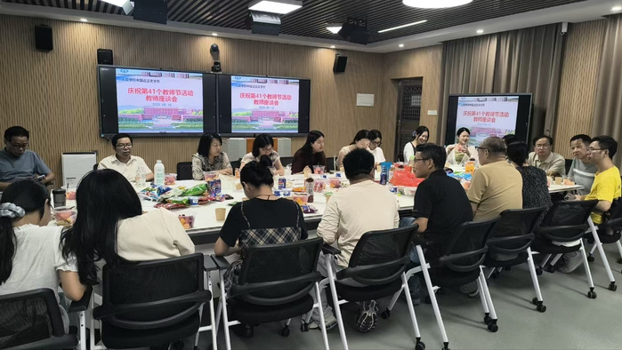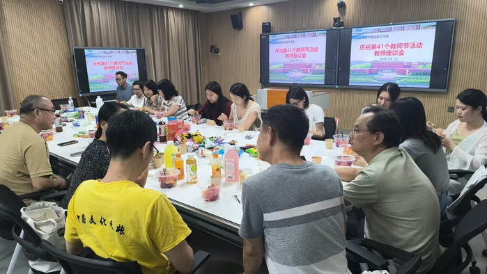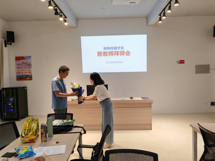 图为新闻传播系青年教师拜师会和教师节座谈会的现场